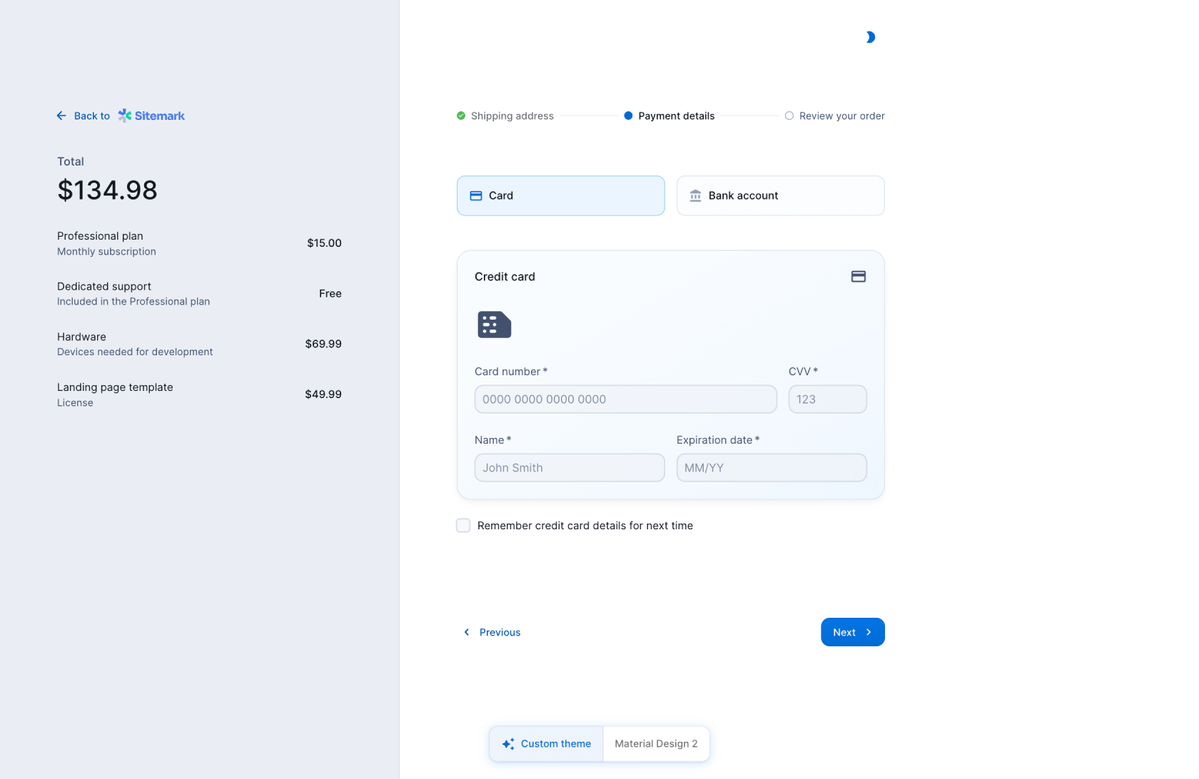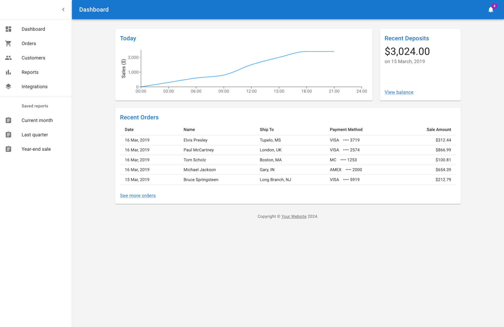 Our curated collection of free Material UI templates includes dashboards, landing pages, sign-in and sign-up pages, a blog, a checkout flow, and more. They can be combined with one of the example projects to form a complete starter.